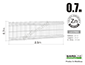 Панели имеют ширину 2500 мм и возможный диапазон высоты: от 1030 до 2030 мм. Они имеют, выступающие на 30 мм, штыри с одной стороны панели, которые могут быть, как низом, так и верхом ограждения. Горизонтальные ребра жесткости обеспечивают панелям сверхпрочность.Размер ячеек 100 x 50 мм также придают жесткость. Диаметр проволоки - 4,5 мм.